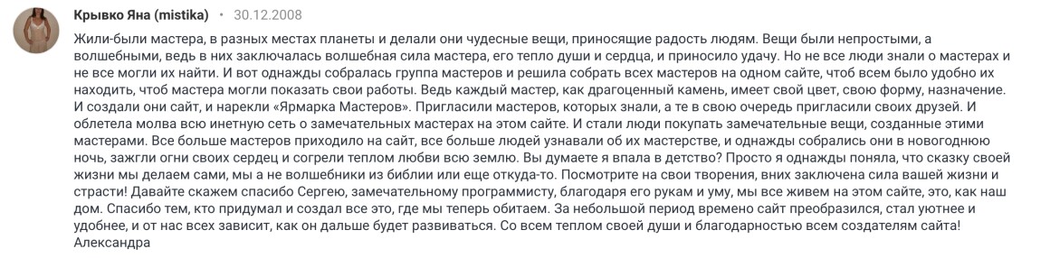 В 2006 году я и Сергей Черкасов создали сайт Ярмарка Мастеров livemaster.ru как пространство, где мастера и дизайнеры могли представить свои работы, а люди находить уникальные вещи ручной работы.